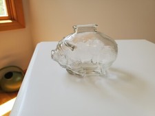 Vintage Anchor Hocking USA Clear Glass Piggy Bank (6.5x4.5)