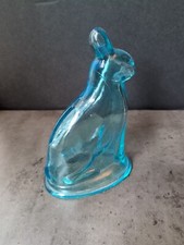 Vintage Blue Glass Bunny Rabbit Coin Bank Turquoise No Bottom