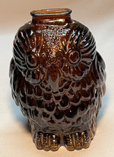 Vintage Libbey Glass Wise Old Owl - Dark Brown Amber - Owl Coin Bank
