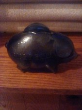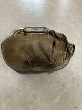 Vintage Dark Brown Amber Textured Glass Piggy Bank 5"H x 6.5'L x 4"W
