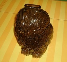 Wise Old Owl Glass Bank Amber Brown Vintage