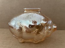 Vintage Small Mid Century Carnival Glass Marigold Piggy Bank Opalescent Finish