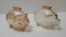 Vintage Anchor Hocking Glass Pig Coin Banks Lot of 2 small *Cracked*
