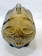 Vintage Anchor Hocking Glass Piggy Bank Amber Gold 7 in. Wide