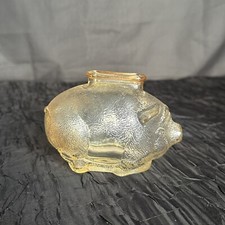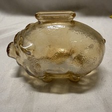 Vintage Anchor Hocking Marigold Glass Piggy Bank Pig Amber Carnival Small Mini