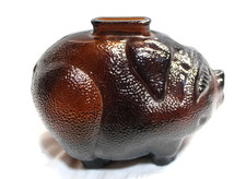 Vintage Pig PIGGY BANK - Dark Amber Glass 1950's
