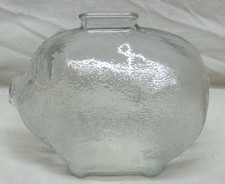 Vintage Anchor Hocking Clear Textured Glass Heavy Piggy Bank