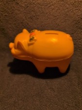 Vtg Blow Mold Orange Piggy Coin Bank Hard Plastic toy holds up to $800 quarters