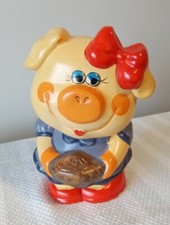VINTAGE tOY 6" HIGH PLASTIC MS PIG PIGGY BANK