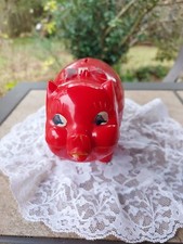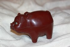 Toy Town Red Burgundy Plastic Celluloid Piggy Pig Bank Vintage