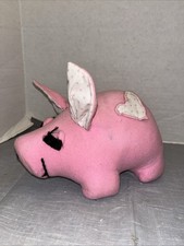 Vintage 1982 Hallmark Pink Piggy Bank Penny Pig Bank w/ Long Eyelashes Plush Toy