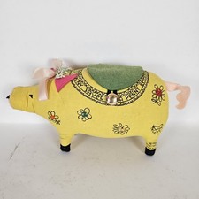 RARE Vintage 60’s Yellow Pig Piggy Bank Flower Power! Hippie RETRO! Fabric