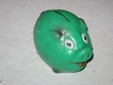 Vintage Toy Town Corp Green Plastic Piggy Bank 6" Long. Still works