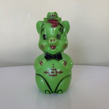 Vintage Piggy Bank/Pig Toy in Green Soft Plastic | Ca. 1940's