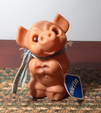 VTG Norfin Dam Pig Figurine Soft Vinyl Toy Bank w/ Original Tag, Key, & Scarf