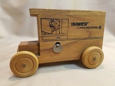 US West Communications Wooden Truck Van Toy Bank Musical Advertising Logomobile