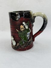 Signed Japanese Sumida Gawa Pottery Mug Vintage Antique Tankard Style
