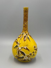 Antique 20th c Japanese Yellow Gold Porcelain Vase 10 "