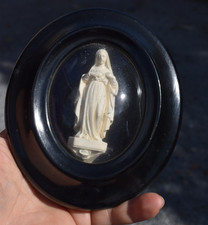 Antique Religious Medallion of Ave Maria Mary on Onyx Plaque Easel Back signed