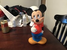 Vintage 70s Disney Mickey Mouse Rubber Plastic Piggy Bank 12" Illco Toy Co