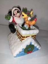 Vintage Disney Schmid Santa Mickey And Pluto Reindeer On Rooftop Music Box Japan