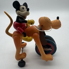 Vintage WDW Walt Disney Mickey Mouse Riding Pluto Wind Up Schylling Toy
