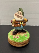 Vintage Schmid Walt Disney Co Happy Dwarf Music Box Sown White Seven Figure Rare