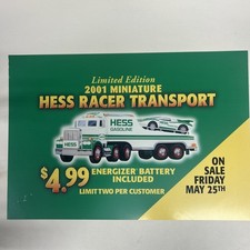 2001 Vintage Hess Miniature Racer Transport Store Advertising Sign