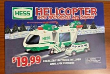 2001 Hess Helicopter with Motorcycle Toy Truck Advertising Sign19.5" X 13.5"