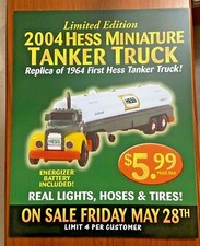 2004 Hess Miniature Tanker Toy Truck Gas Pump Advertising Sign14.5" X 18"