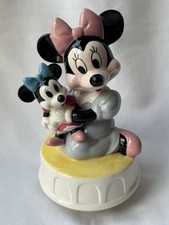 VINTAGE Disney Schmid Minnie Holding Minnie Ceramic Figurine Music Box Rare