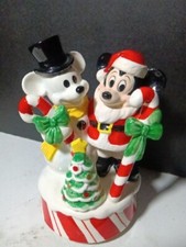 Vintage Ceramic Mickey Mouse Santa & Pluto Reindeer Rudolph Musical Box Japan