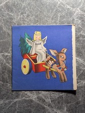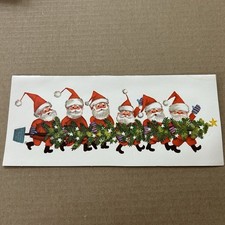 Vintage Mid-Century Christmas Card Embossed Seven Cheerful Santa’s Carrying Tree
