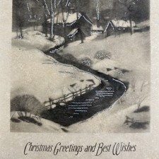 Vintage Early Mid Century Christmas Greeting Card Silver Snowy Stream Parchment