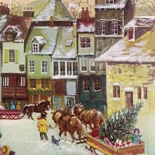 Vintage Mid Century Christmas Greeting Card Horse Wagon Bring Tree Home Village