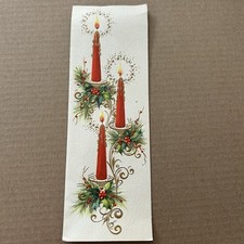 Vintage Mid-Century Christmas Card Red Candles Holly Embossed