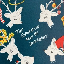 Vintage Mid Century Christmas Greeting Card Atomic Reindeer White Deer Santa Hat