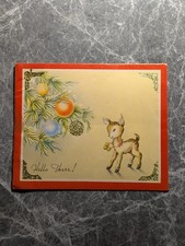 Vintage Christmas Card Fawn Deer Brundage Glitter MCM Greeting Hello There