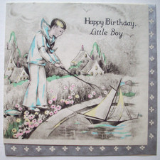 Boy with toy sailboat vintage Birthday Greeting Card *WW2