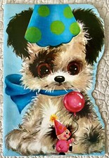 Unused Birthday Dog Puppy Black White Hat Toy Balloon Vtg Greeting Card 1960s