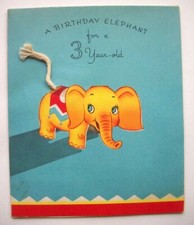 Elephant vintage 3rd Birthday greeting card *K8 missing inside punch out toy