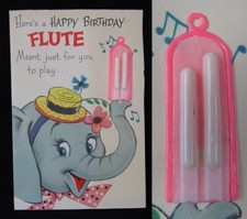 VINTAGE 1960's greeting card ELEPHANT birthday ATTACHED FLUTE TOY!!