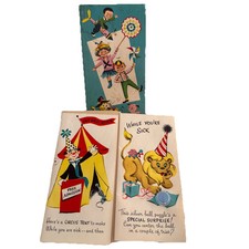 Vintage 1950’s Kids TOYCARDS Birthday Card Box & 2 Toy Greeting Cards Children’s