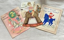 3 Vintage Birthday Greeting Cards Little Boy Toy Rocking Horses Equestrian 1940s