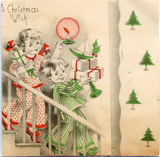 Vintage Greeting Card A Christmas Wish for Toys Gifts Children on Steps 1937