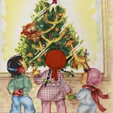 1 VTG Xmas Greeting Card Excited Children Looking Through Toy Store Window 🧸