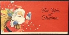 Vtg Christmas Greeting CASH Card Jolly Santa Claus Carrying Bag Of Candy & Toys