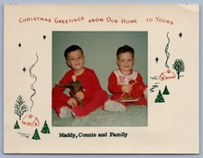UNUSED - Christmas Boy & Girl, Dog - 1950's Vintage TOY, ACTIVITY Christmas Card