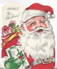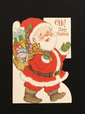 VTG FUN HOLIDAY GIBSON GREETINGS CARD EMBOSSED DIE CUT SANTA BAG OF TOYS UNUSED