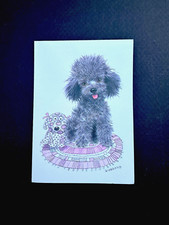 1 VTG Xmas Greeting Card Adorable Black Poodle Puppy W/ Rag Dog Toy 🧸